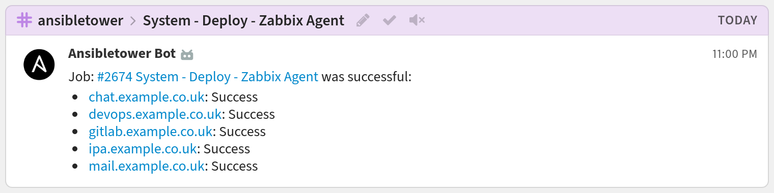 You're done! Your Ansible Tower notifications may look like this: