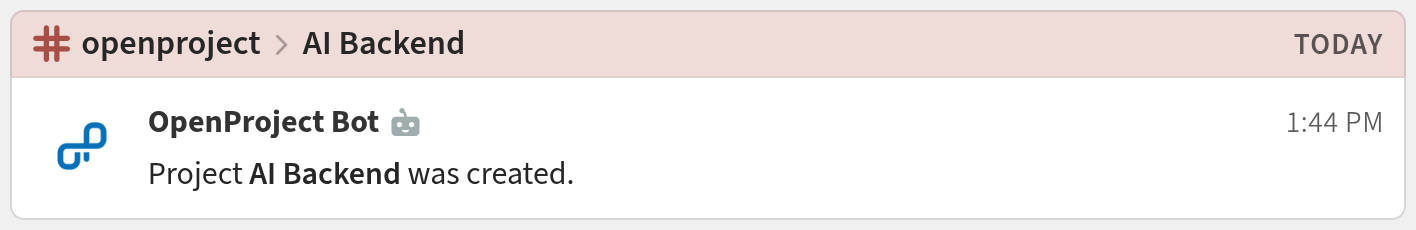1. Create a bot for OpenProject. Make sure that you select Incoming webhook as the Bot type.